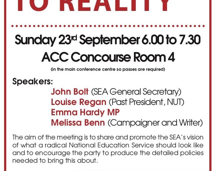 This year’s Labour Party Conference runs from Sunday 23rd to Wednesday 26th September and is being held at the ACC in Liverpool. For the first time in several years, SEA is holding a fringe meeting at conference. It will be at 6.00 pm on Sunday 23rd in Concourse Room 4 of the main conference centre.