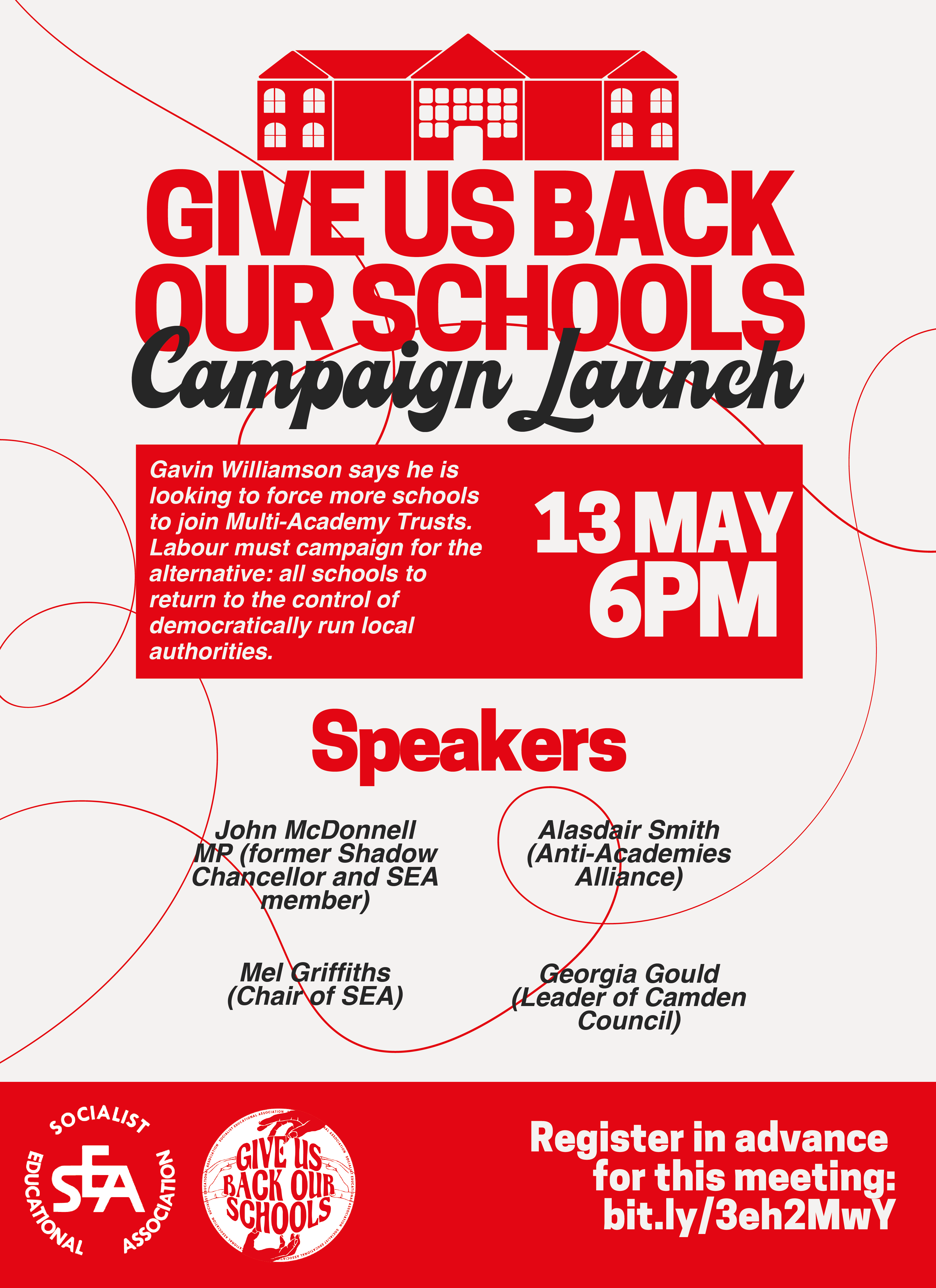 “Gavin Williamson says he is looking to force more schools to join Multi-Academy Trusts. Labour must campaign for the alternative: all schools to return to the control of democratically run local authorities.”